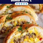 This Breakfast Braid is a delicious and visually impressive dish made with flaky refrigerated pizza dough filled with seasoned ground breakfast sausage, scrambled eggs with red bell peppers, and melted cheddar cheese. It’s perfect for brunch or a special breakfast occasion, offering a hearty and satisfying start to your day.