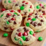 - Mix in Decorations: Fold in the red and green sprinkles along with the Christmas M&Ms, ensuring they are evenly distributed throughout the dough.