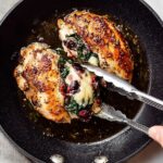 - Cook the chicken: Preheat the oven to 400°F (200°C). Heat 2 tablespoons of olive oil in a large oven-safe skillet over medium heat. Sear the stuffed chicken breasts for 3 minutes per side until golden brown. Transfer the pan to the oven and bake for 15 to 18 minutes, until the chicken reaches an internal temperature of 165°F (73°C).