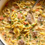 - Cook Noodles: Boil egg noodles in salted water in a separate pot until just al dente, a couple minutes before package directions. Drain and optionally toss lightly with olive oil to prevent sticking.