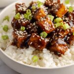 - Serve and Garnish: Serve the crispy orange tofu over cooked rice, garnished with sliced green onions and toasted sesame seeds if desired. Enjoy your flavorful meal!