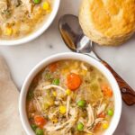 - Serve: Serve the chicken pot pie mixture hot with one biscuit on top of each serving for a delicious and comforting meal.