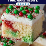 - Serve: Just before serving, decorate the cake with red and green sprinkles or other festive decorations. Slice and enjoy your Christmas Poke Cake!