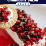 - Serve: Spoon the chilled cranberry salsa over the cream cheese block and serve immediately with your favorite crackers for dipping.
