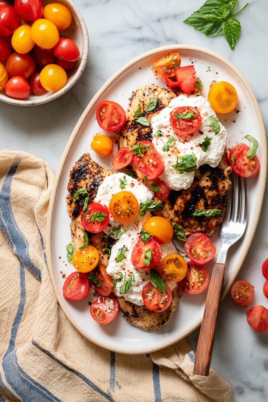 - Vegetarian Twist: Try grilled thick slices of eggplant or portobello mushrooms instead of chicken, topped with the same burrata and tomato salad.