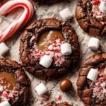 These hot chocolate cookies are soft and fudgy chocolate treats with a marshmallow swirl and a molten, rich hot chocolate center. Each cookie is stuffed with a peppermint milk chocolate truffle, topped with crushed candy canes and mini marshmallows, making them perfect for winter and holiday celebrations. They come together in one bowl with no chill time, allowing you to enjoy them within 30 minutes.
