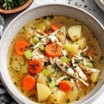 This easy turkey soup is a comforting and flavorful way to use leftover turkey. Packed with vegetables, tender potatoes, fresh herbs, and a savory broth, it's perfect as a wholesome meal that is simple to prepare and perfect for warming up on cooler days.