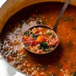 A hearty and healthy Mediterranean Lentil Soup featuring fire-roasted tomatoes, vibrant herbs, and nutrient-rich kale. This vegetarian soup is packed with plant-based protein and comforting flavors, perfect for cozy fall and winter meals.