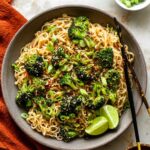 A quick and easy 20 minute scallion noodle recipe featuring sautéed broccoli, garlic butter sauce, and optional protein additions like edamame and eggs. Perfect for a simple weeknight meal with bold flavors and a touch of spice.