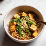 - Serve and garnish: Divide the sesame ramen noodles with crispy tofu into bowls. Garnish with crushed peanuts, sesame seeds, and thinly sliced green onions for added texture and flavor. Serve immediately and enjoy.