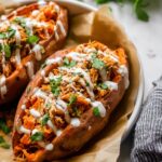 - Serve: Drizzle stuffed sweet potatoes with additional buffalo sauce and ranch dressing as desired and serve hot.