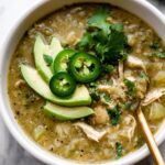 A thick and hearty Slow Cooker Chicken Chile Verde Stew featuring tender chicken thighs, red potatoes, and zesty salsa verde. This flavorful stew is perfect for meal prep or freezer stocking and offers a mild spicy kick with comforting textures.