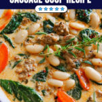 Sausage White Bean Soup is a hearty and comforting one-pot meal featuring spicy Italian sausage, tender white beans, vibrant vegetables, and fresh spinach, all simmered in a flavorful creamy broth. Perfect for chilly nights, this balanced soup is rich in protein and packed with veggies, making it a satisfying and delicious choice for any seasonal menu.