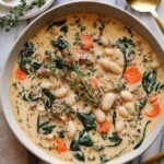 Sausage White Bean Soup is a hearty and comforting one-pot meal featuring spicy Italian sausage, tender white beans, vibrant vegetables, and fresh spinach, all simmered in a flavorful creamy broth. Perfect for chilly nights, this balanced soup is rich in protein and packed with veggies, making it a satisfying and delicious choice for any seasonal menu.