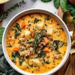 This rich and creamy Sausage Potato Soup features spicy Italian sausage, tender red or yellow potatoes, carrots, and nutritious spinach. A hearty and flavorful meal ready in under an hour, perfect for cozy dinners.